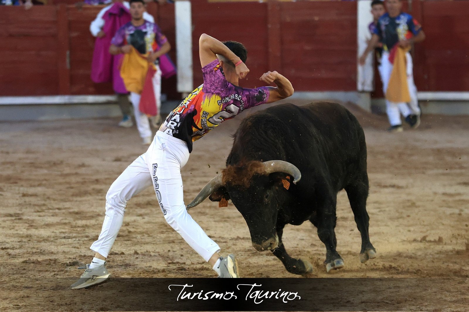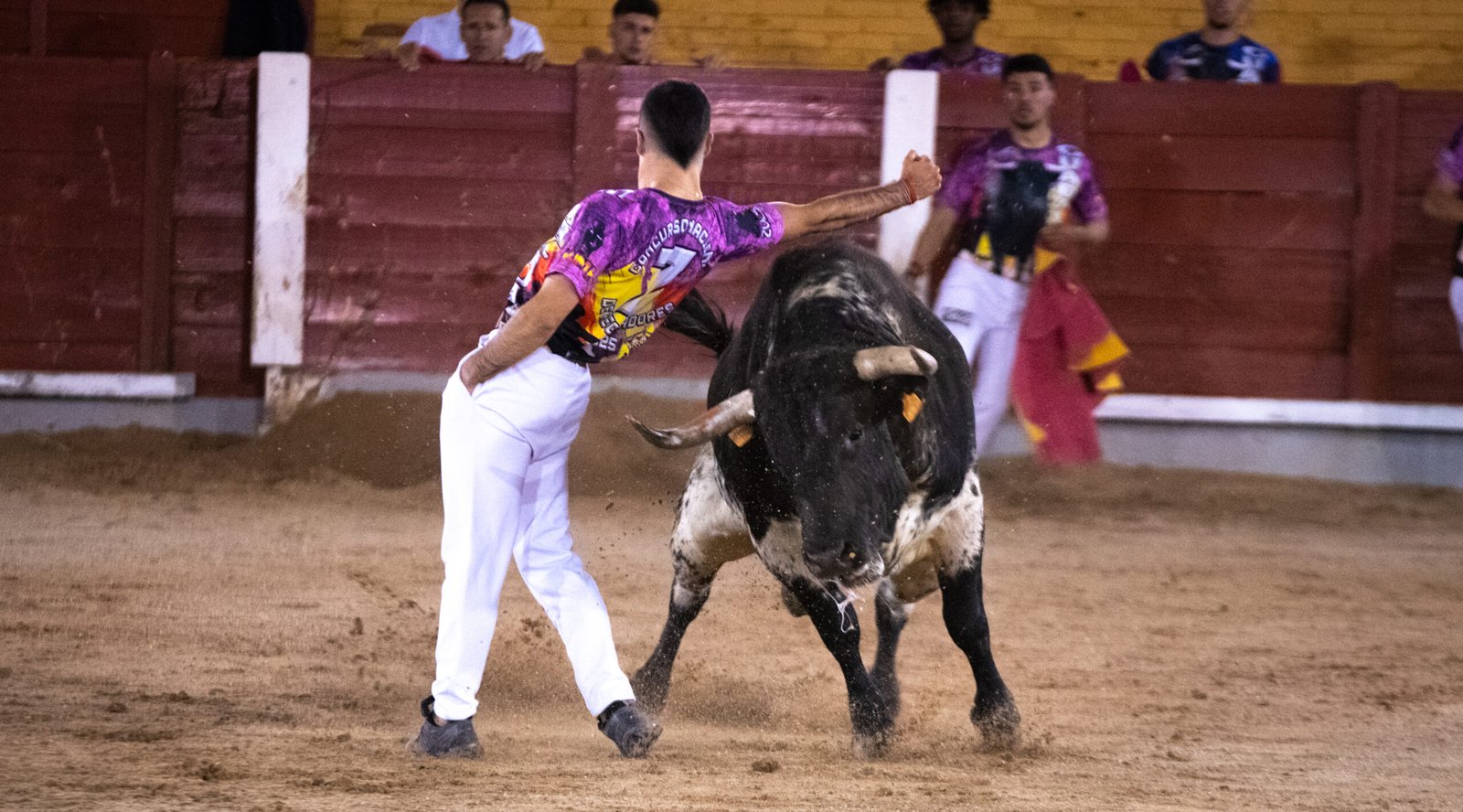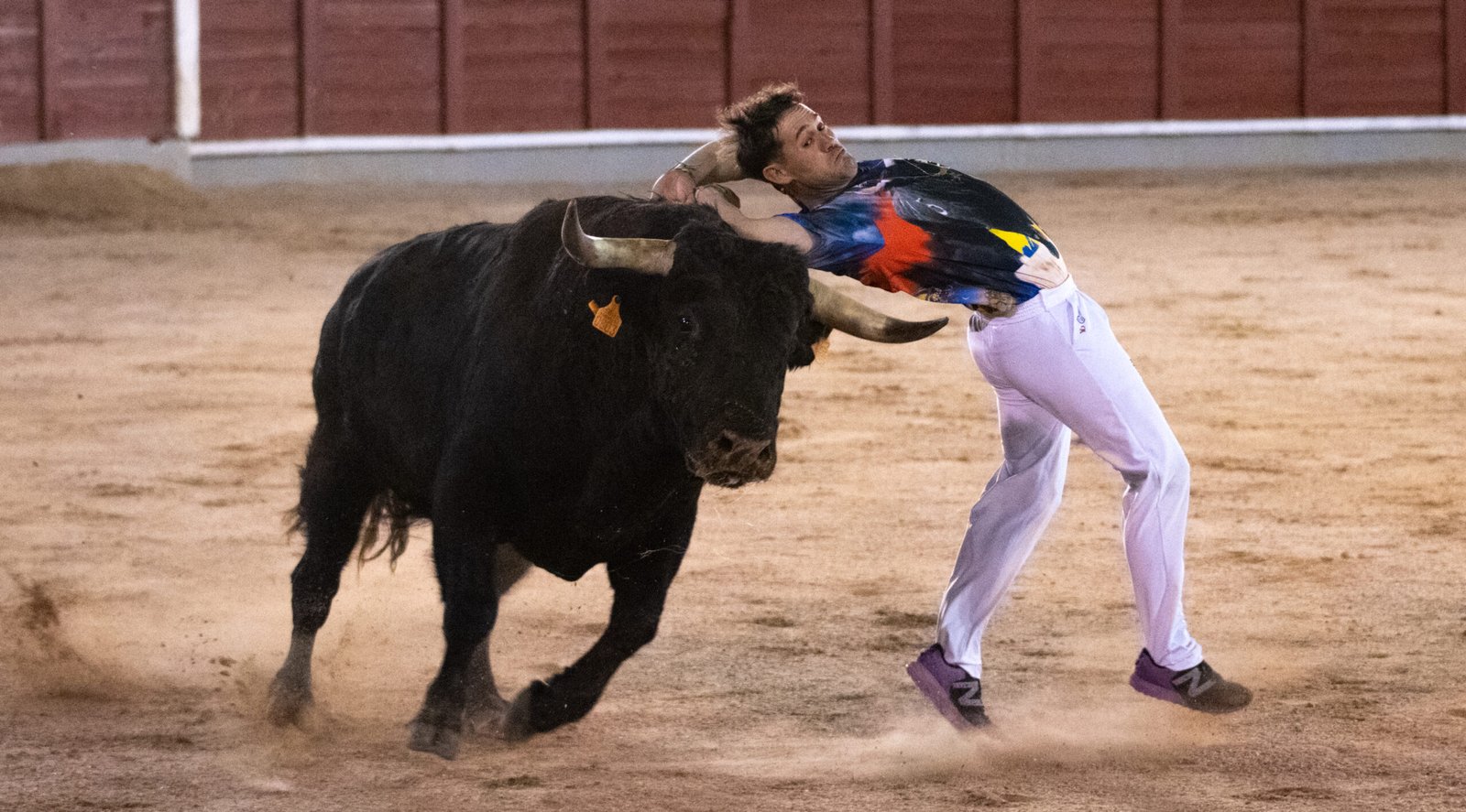 En último lugar, fue el turno de Daniel Alcalá “Chiquitín”, quien antes de comenzar estaba con lágrimas en los ojos en un burladero tras saludar a Marcos, un recortador que quedó en silla de ruedas por un accidente de tráfico. Así que el primero de sus saltos se lo brindó a él, un salto de espaldas con el toro parado. Después, otro tirabuzón de espaldas. En tercer lugar, un pasito adelante elegante, un semáforo bonito, detallazo. Y para finalizar, un muy meritorio salto de dentro a fuera, a toro parado, muy pegado a tablas y con el toro a metro y medio. Espectacular.
