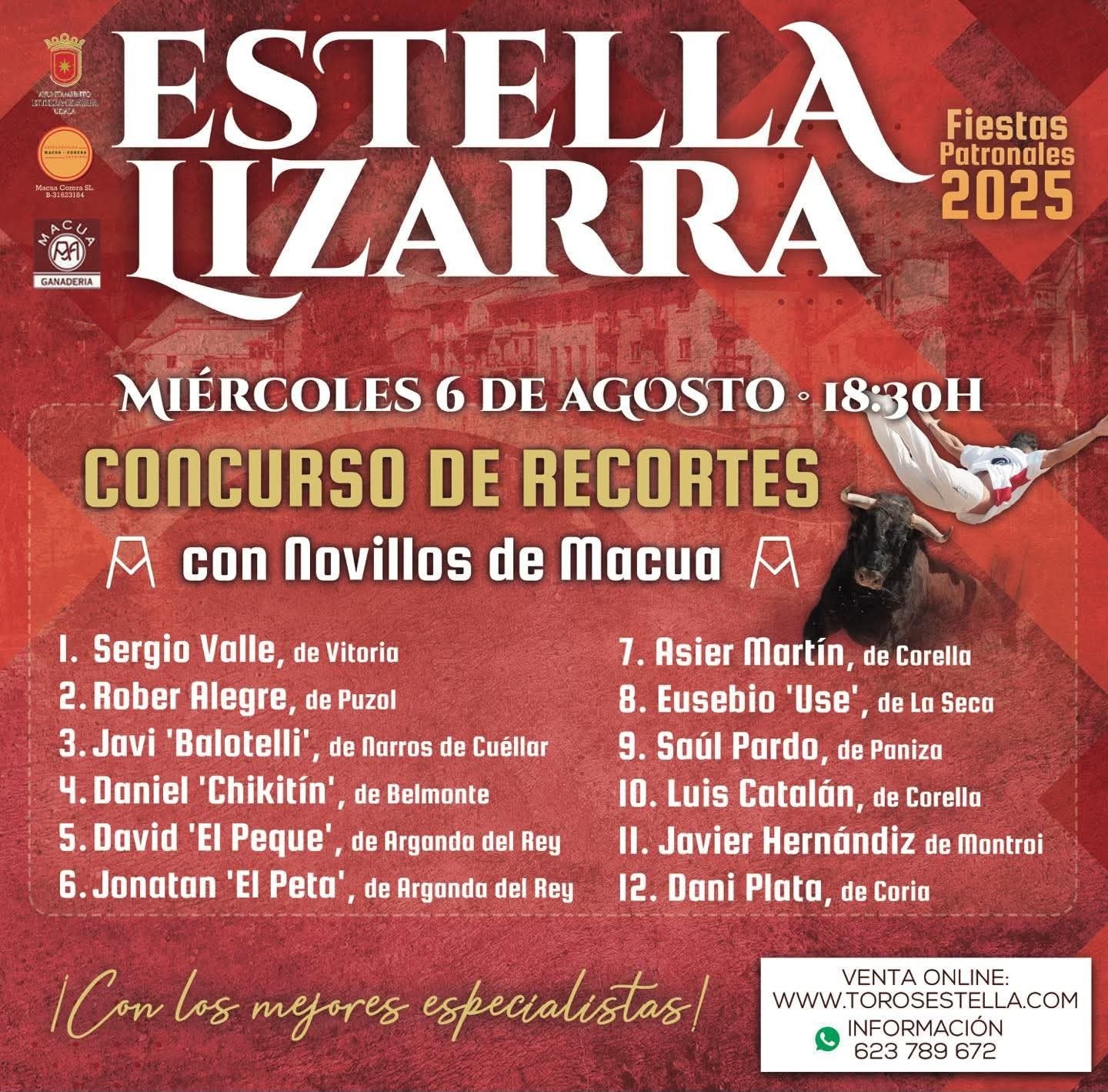 18:30 h. Plaza de Toros. Concurso de Recortes con novillos de Macua.