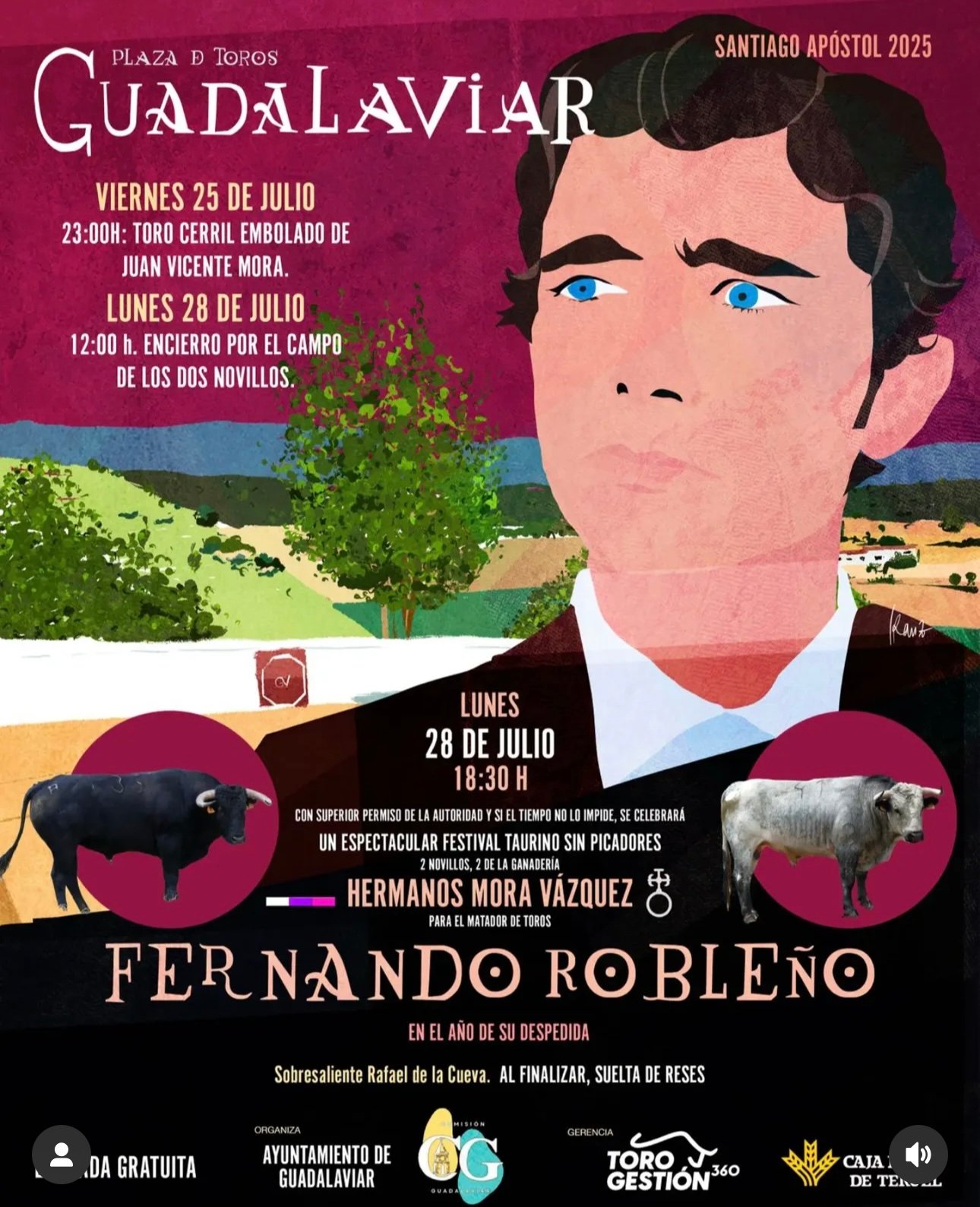 18:30 horas – Lidia de 2 bravos novillos y suelta de vacas