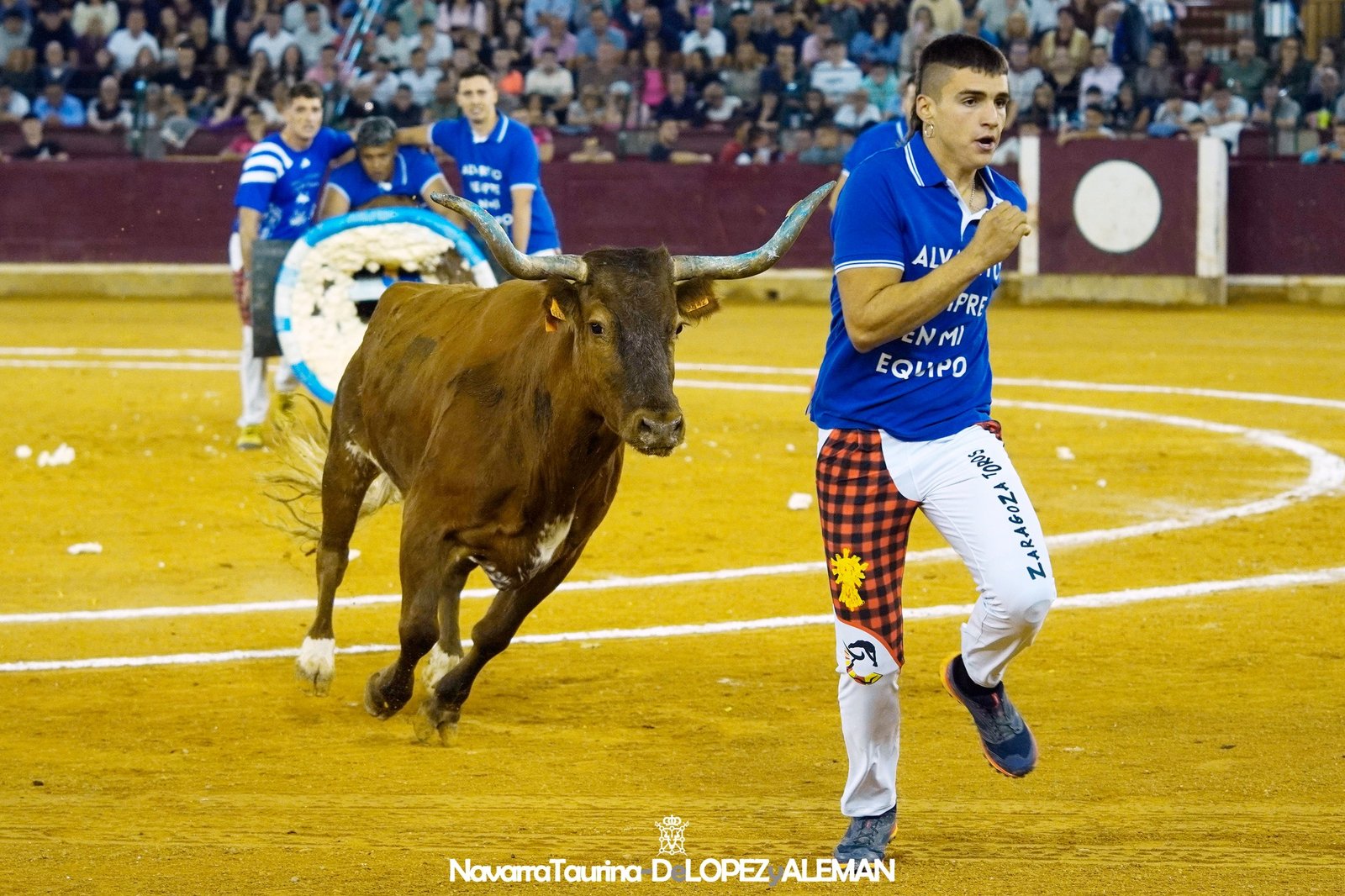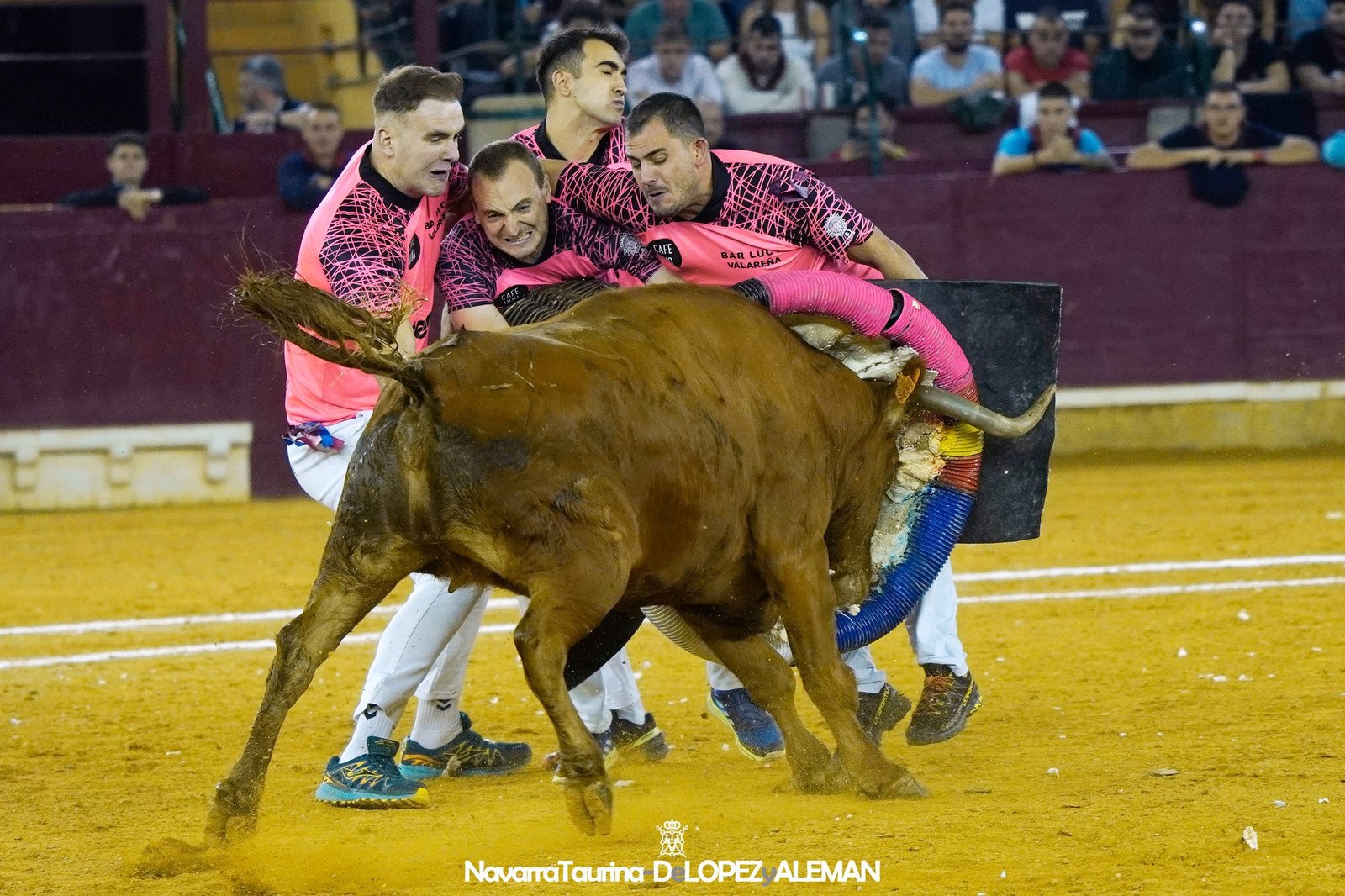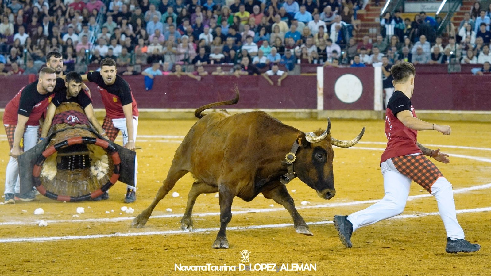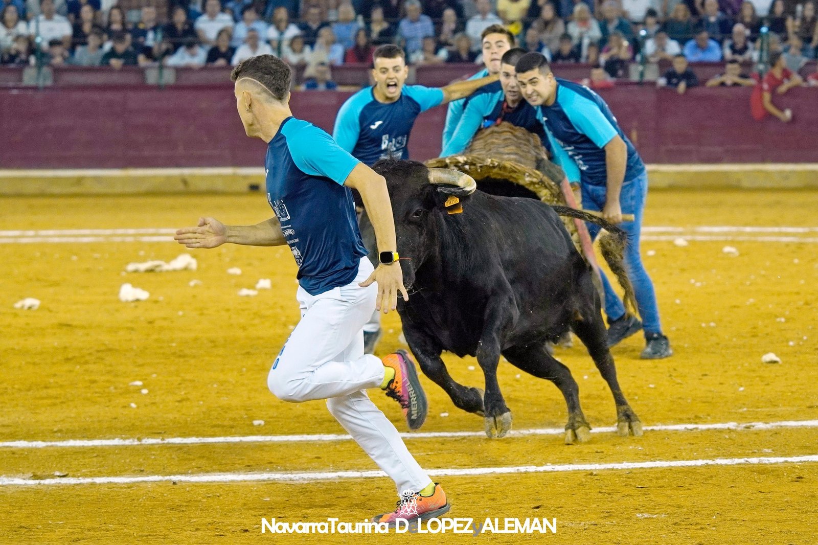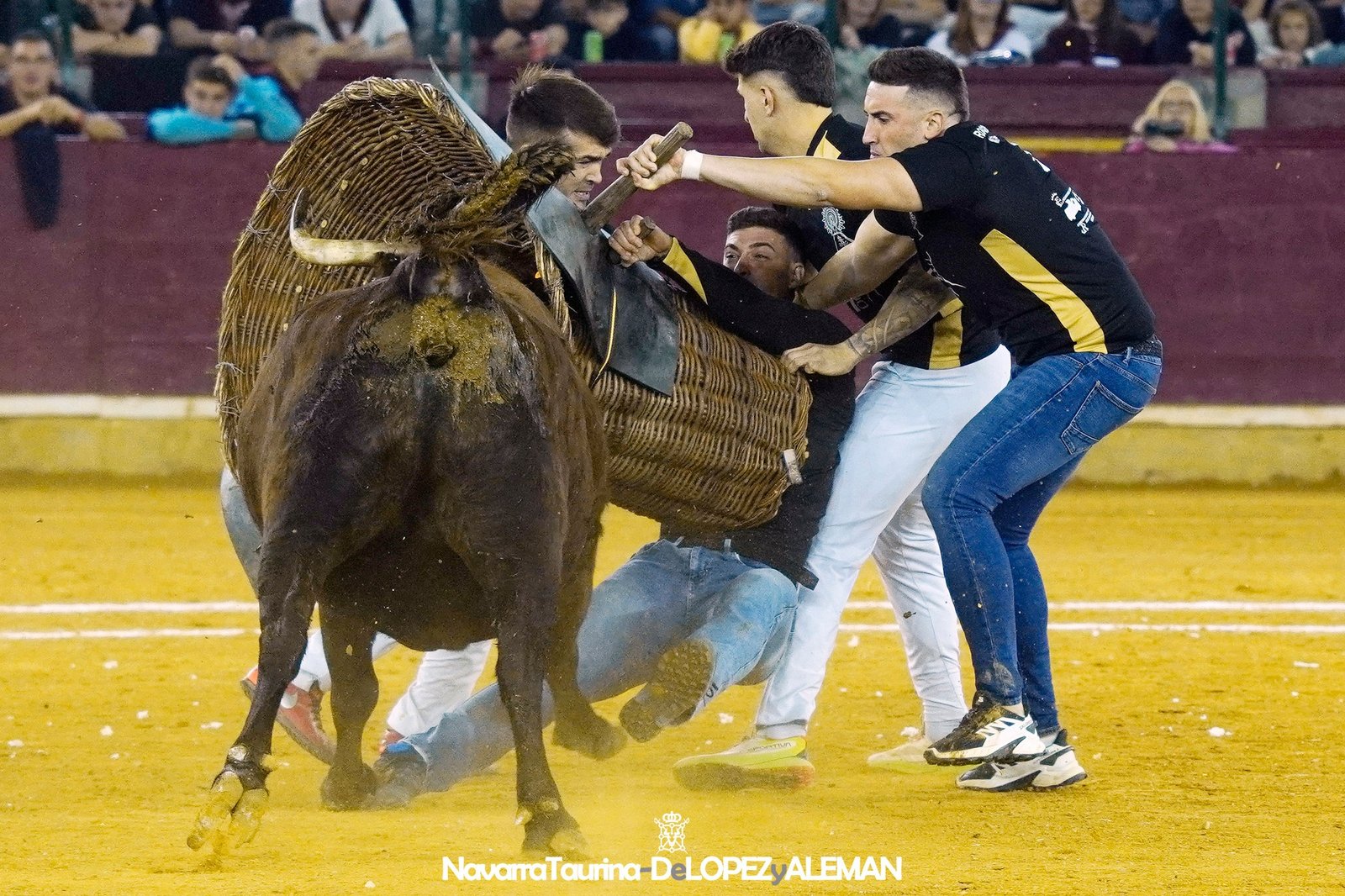 En quinto lugar, saltó al ruedo una cuadrilla de la Ribera Baja del Ebro: Los Furtivos, de Fuentes de Ebro, capitaneados por Iván Salvador. En suerte les correspondió una vaca de El Ancla que esa noche tuvo ganas de empujar y emplearse: Alemana, marcada con el número 2 en las costillas.