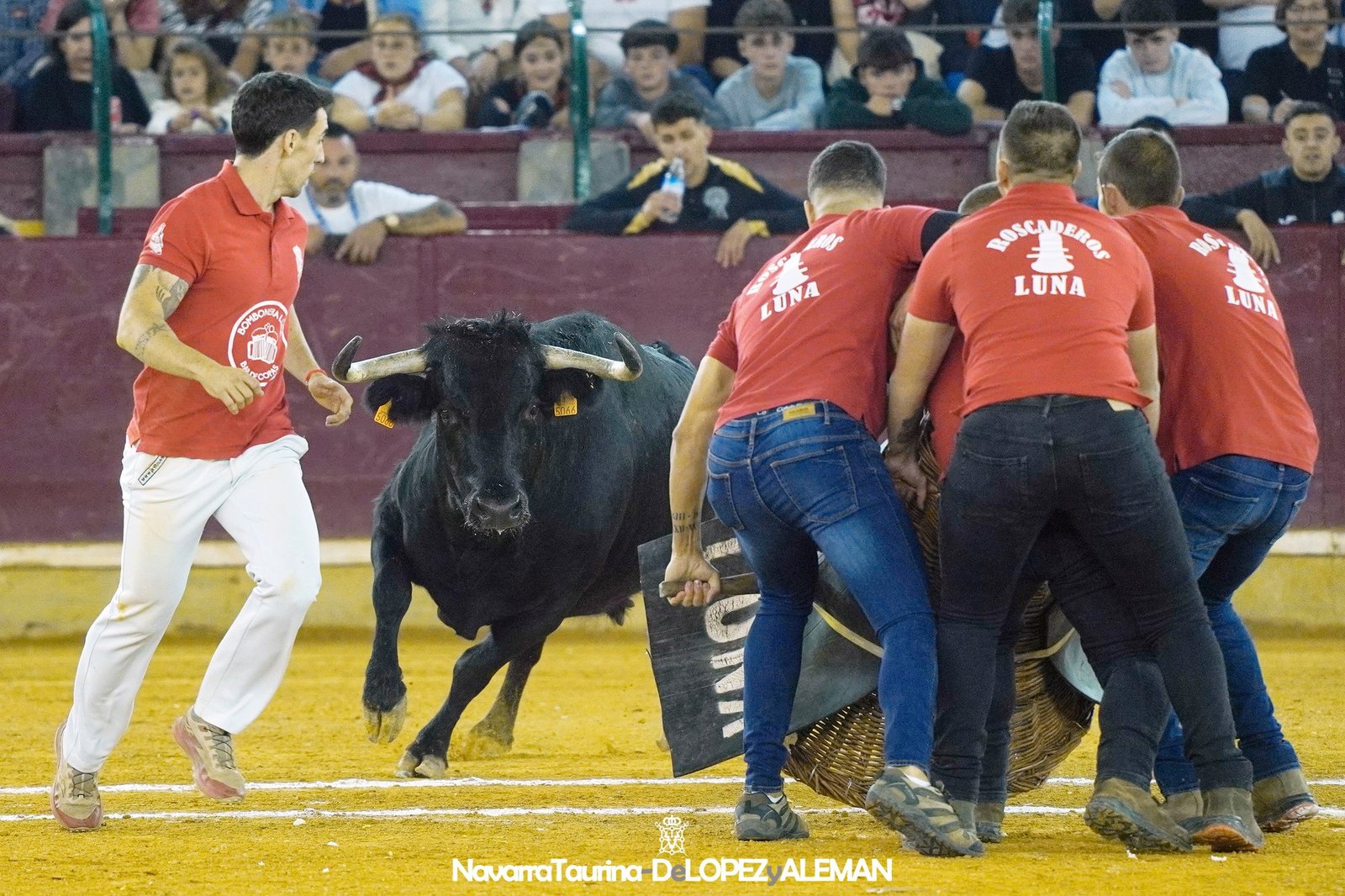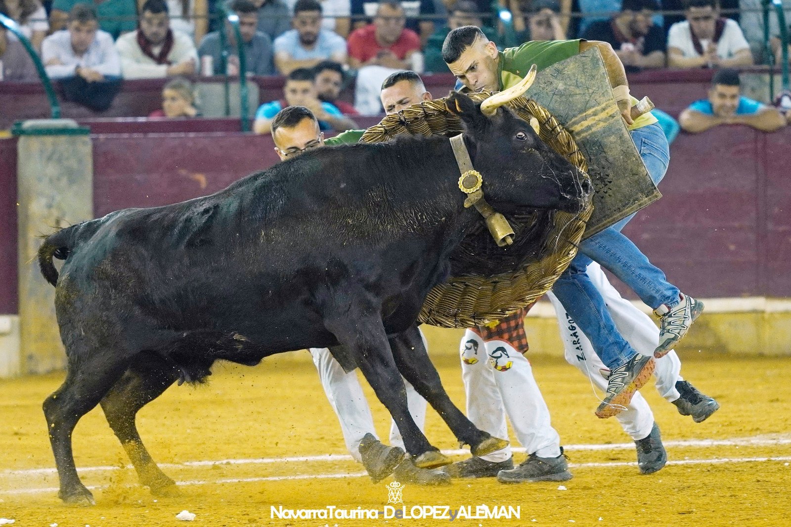 La cuadrilla de Utebo, capitaneada por Toni Train, fue la siguiente en saltar al ruedo. En suerte les correspondió una vaca de Iván López: Vendimiadora, marcada con el número 82. Una vaca colorada muy guapa que tampoco se empleó con el cesto, pero con una gran movilidad y también muy repetidora.