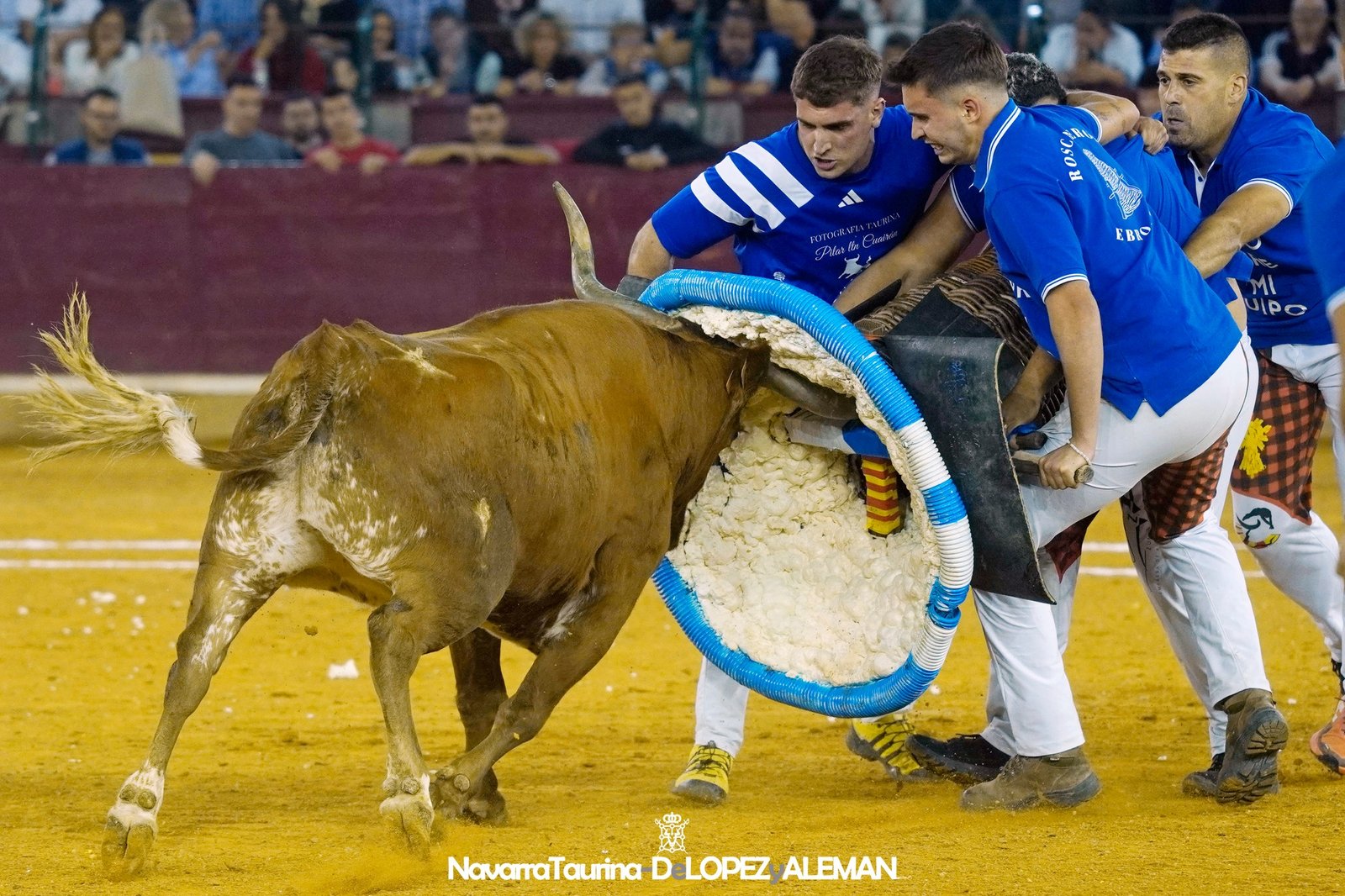 El público le tocó palmas de tango a la vaca y se escucharon pitidos. Si hay un ganadero de los que estaban el viernes pisando La Misericordia que ama el mimbre, ese es Alejandro Ibáñez, propietario de El Ancla, el cual sabe lo que es ganar el Campeonato de España de Roscaderos en El Pilar como roscaderista. Toda la vida agarrado a los palos y asumiendo la responsabilidad de ir a Zaragoza con una ganadería muy joven. Llevó una vaca que hace pocos días en la calle derribó de largo a una cuadrilla, empujando con el alma. En Zaragoza, en arena y de noche, no quiso empujar. Se lo dije a él y lo escribo aquí: sólo a los valientes que dan la cara y asumen riesgos les pueden pasar estas cosas, pero que nadie dude de su compromiso, lealtad y amor por la suerte aragonesa por excelencia: el Roscadero.