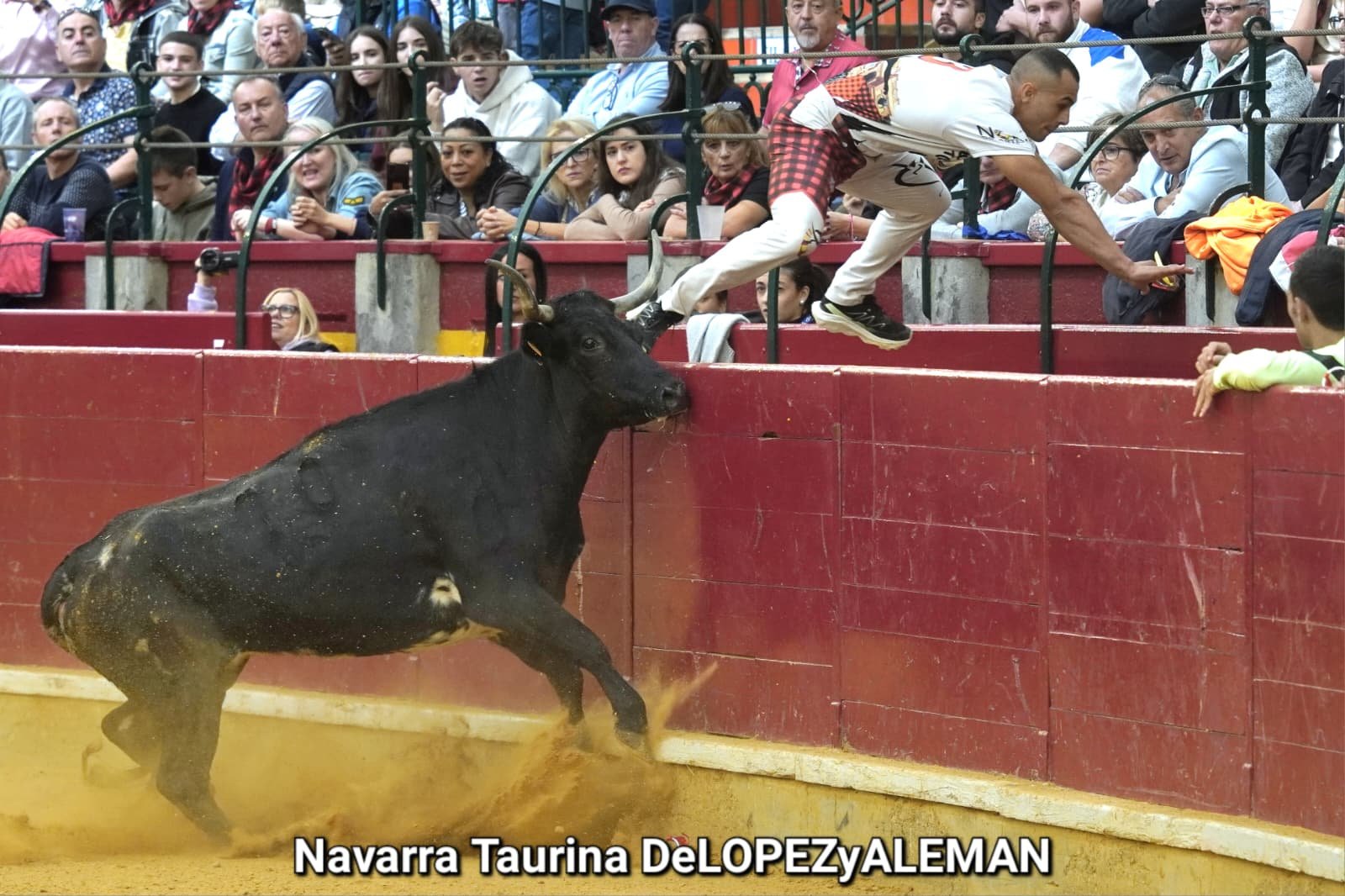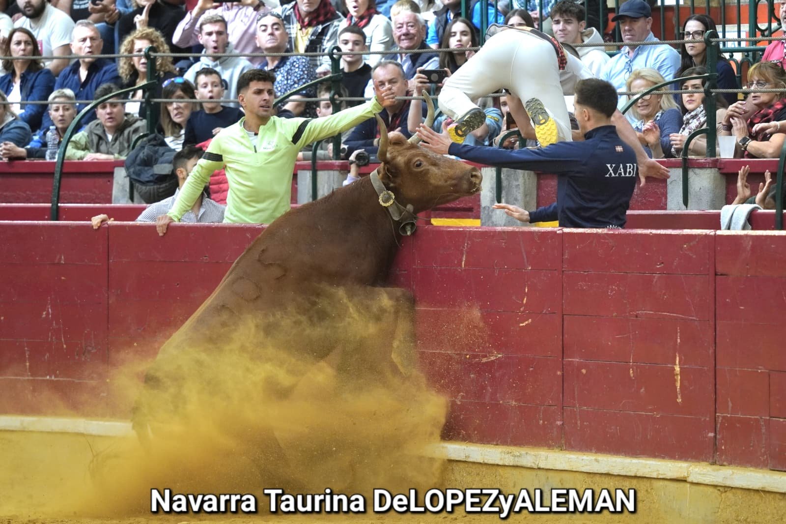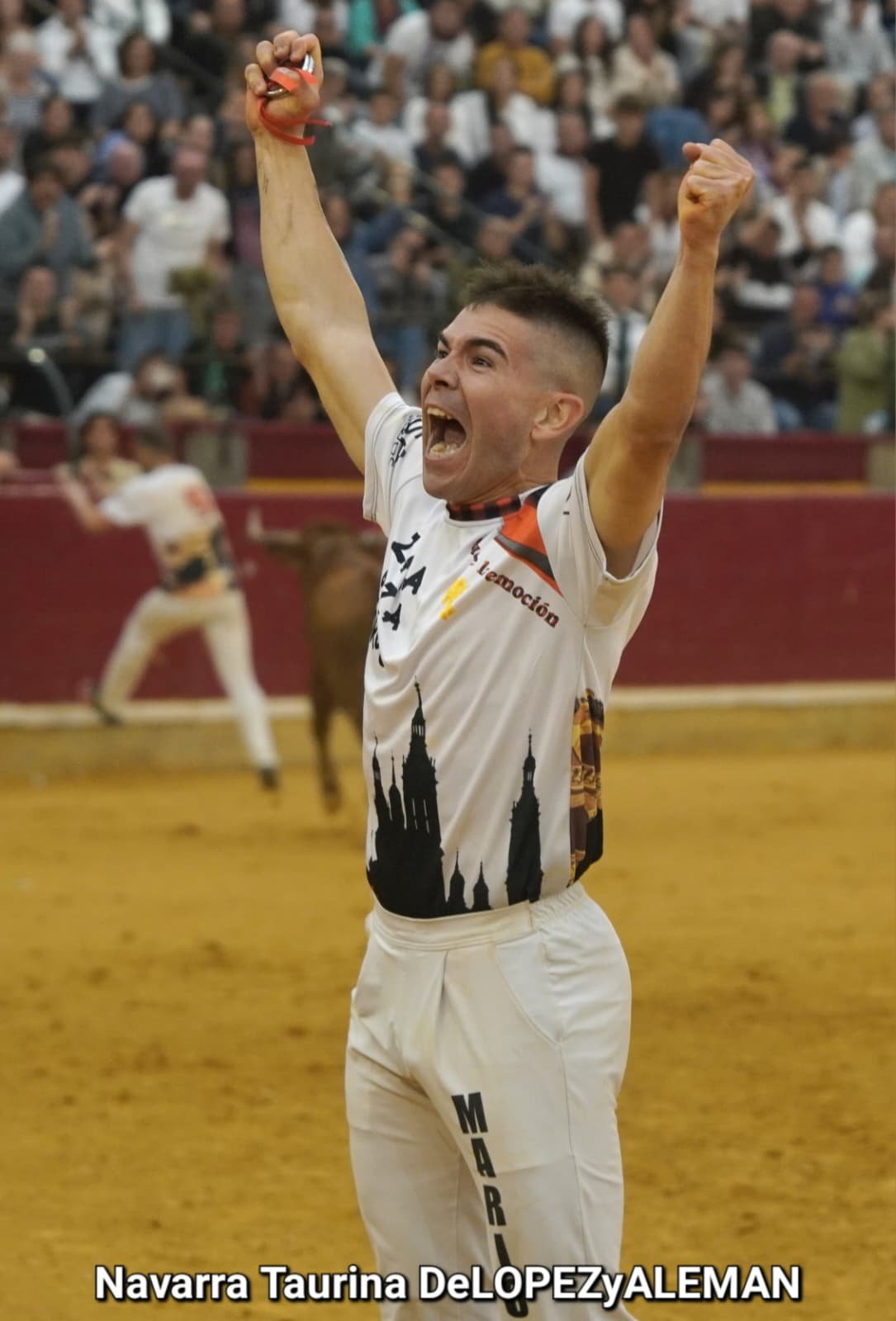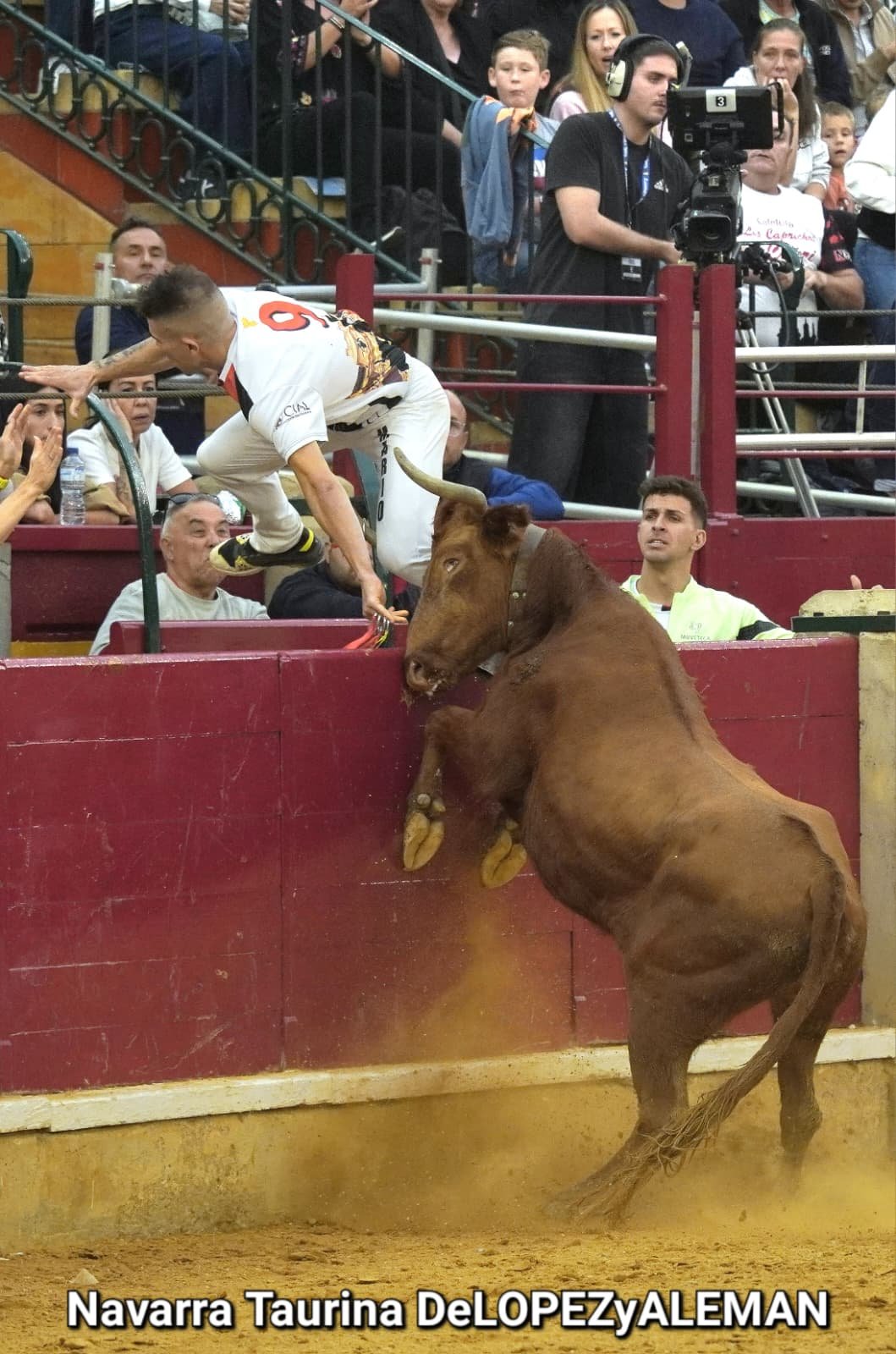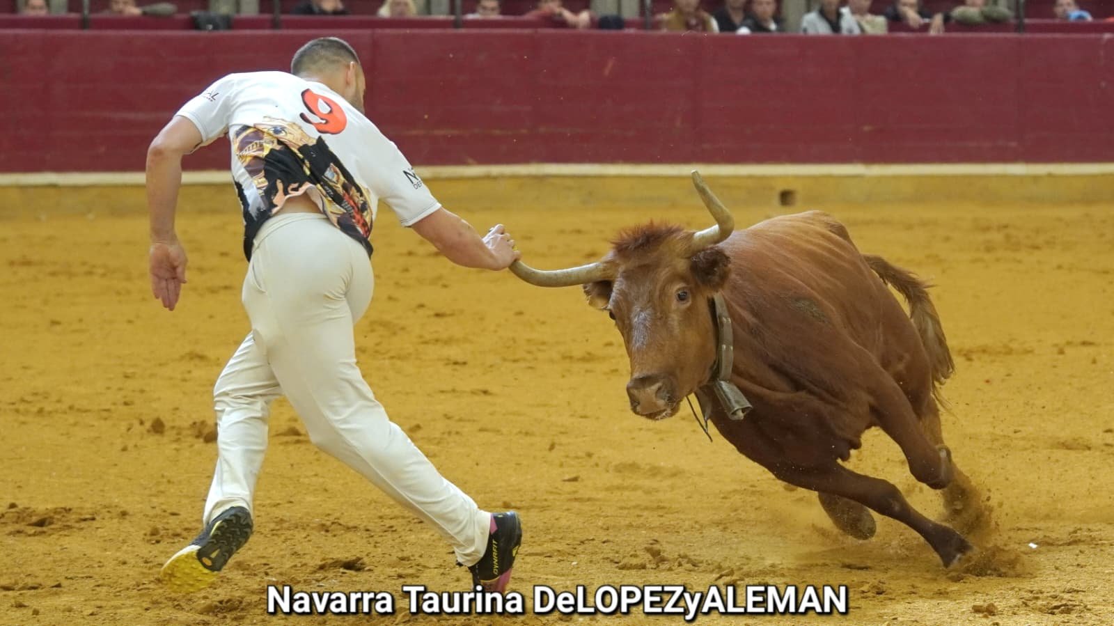 Juan Casos, de Zaragoza, ha sido el recortador que ha ocupado el puesto de Asier Estarriaga en la recta final de la temporada. Así pues, ha formado pareja con Edgar Teixeira, de Caparroso, para enfrentarse a Ribereña, marcada a fuego con el número 519 en los costillares. Una vaca colorada bragada axiblanca de Hermanos Oliva Escudero a la que han entendido pronto y bien.