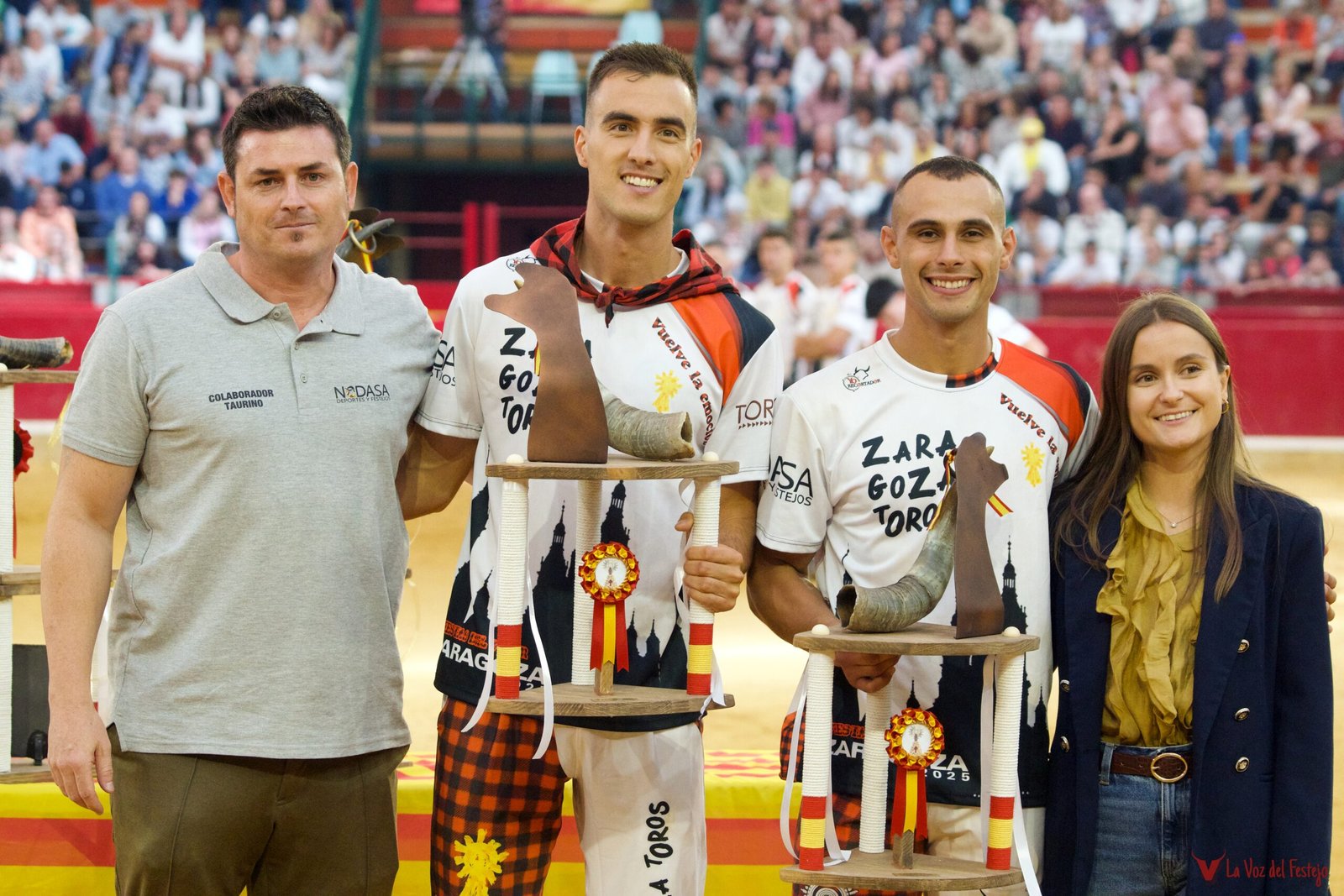 El jurado les ha concedido 4 anillas válidas frente a una vaca que, además, remataba en tablas. De nuevo, La Misericordia ha vibrado con ellos. Dos veces han tenido que parar el tiempo. Cuatro anillas que les han servido para, por unos segundos de tiempo, quedar Subcampeones de España de Recortadores